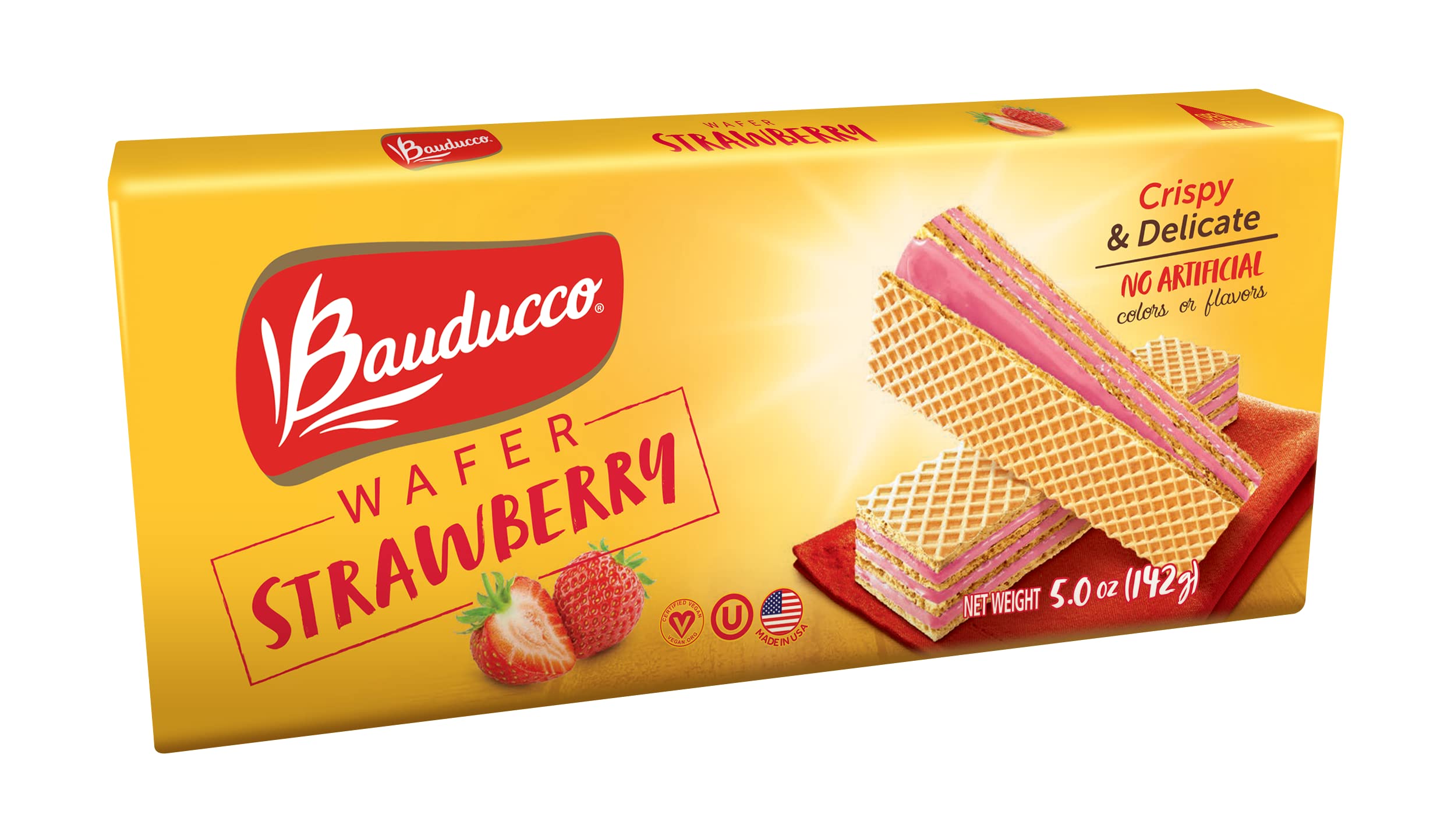 Bauducco Strawberry Wafers – Crispy Wafer Cookies With 3 Delicious, Indulgent, Decadent Layers of Strawberry Flavored Cream – Delicious Sweet Snack or Desert – 5.0 oz